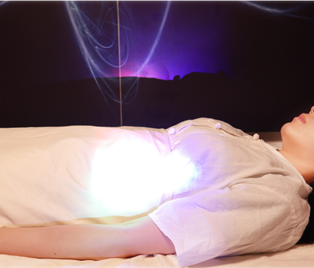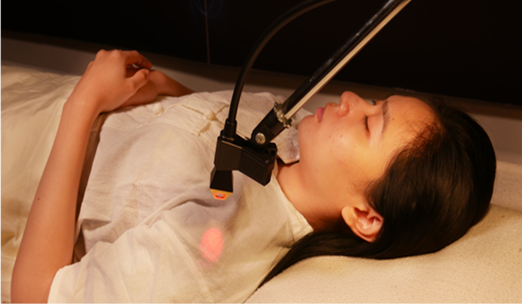 - Projizieren Sie das Licht mit dem optischen Kabel auf eine Zielzone wie Chakra / Bauchpunkt / Nacken / jeden Körperteil, der unangenehm ist.