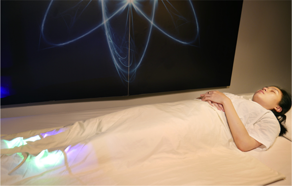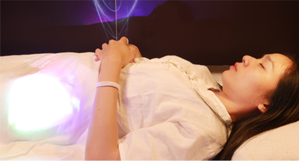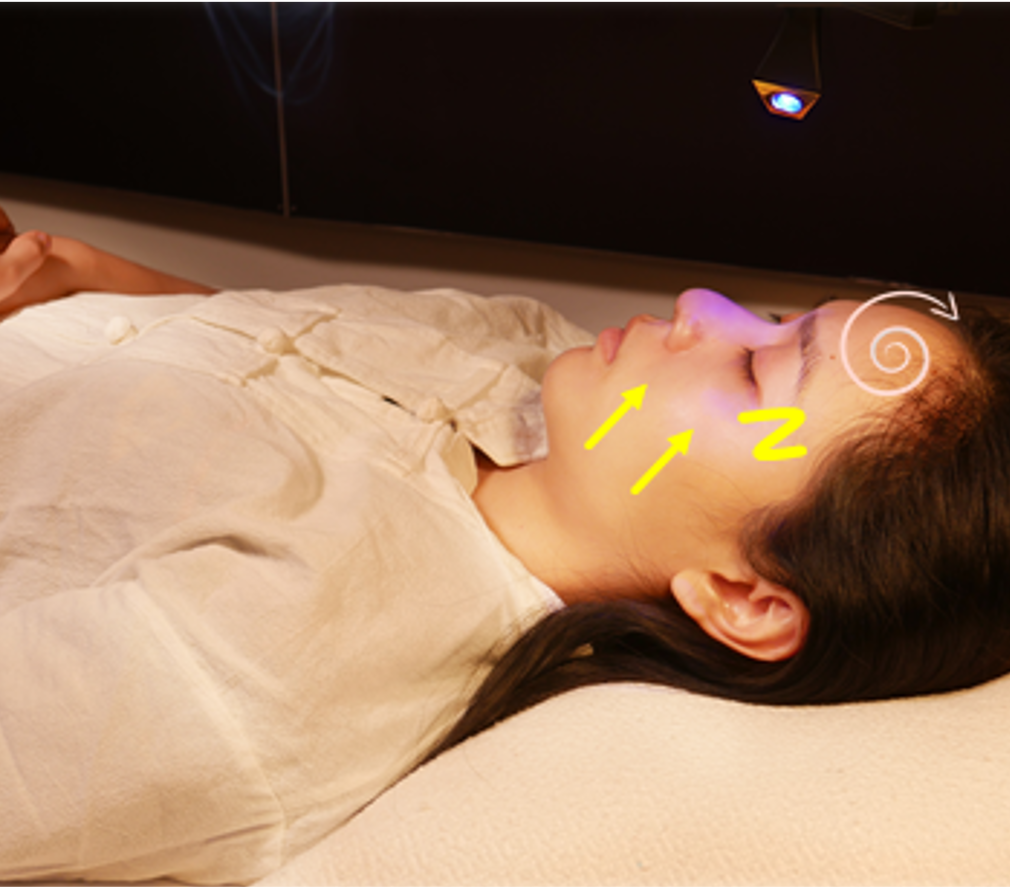 - Wenn Sie eine ganze Nacht lang mit dem Vorteil der Lichtresonanz schlafen möchten, tragen Sie bitte eine Augenmaske. Die Lichter blockieren das Melatonin, das für einen guten Schlaf sorgt.